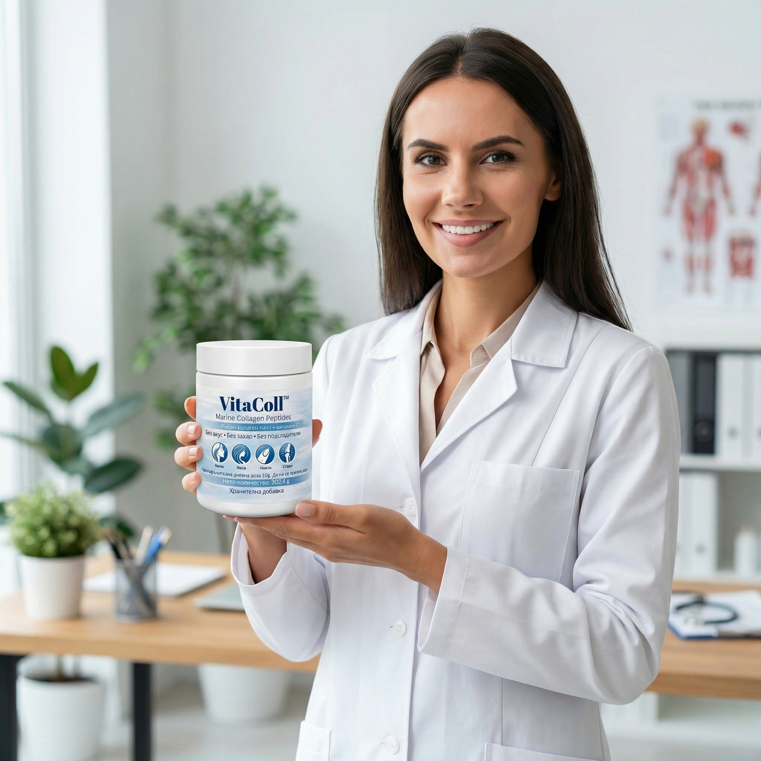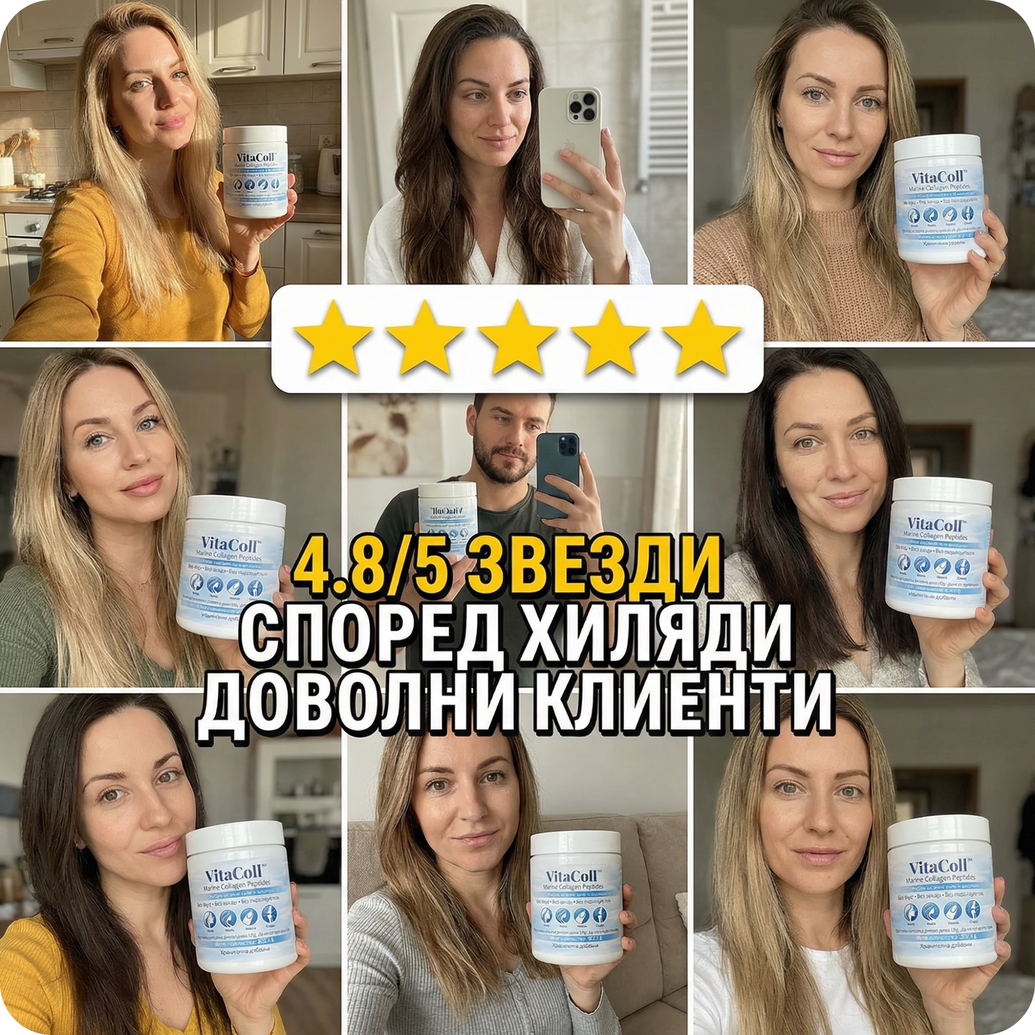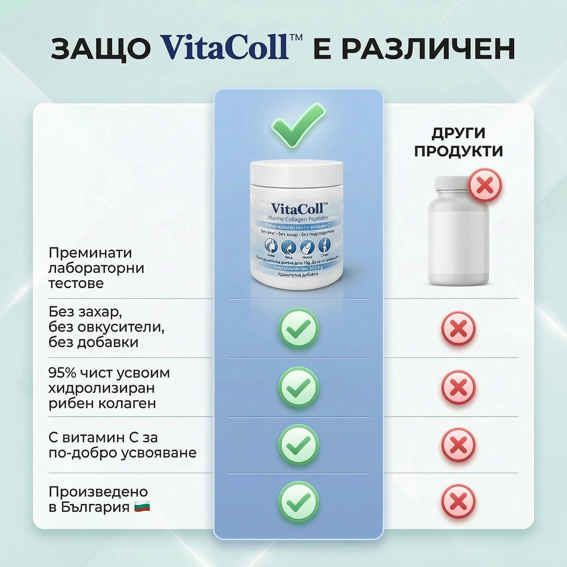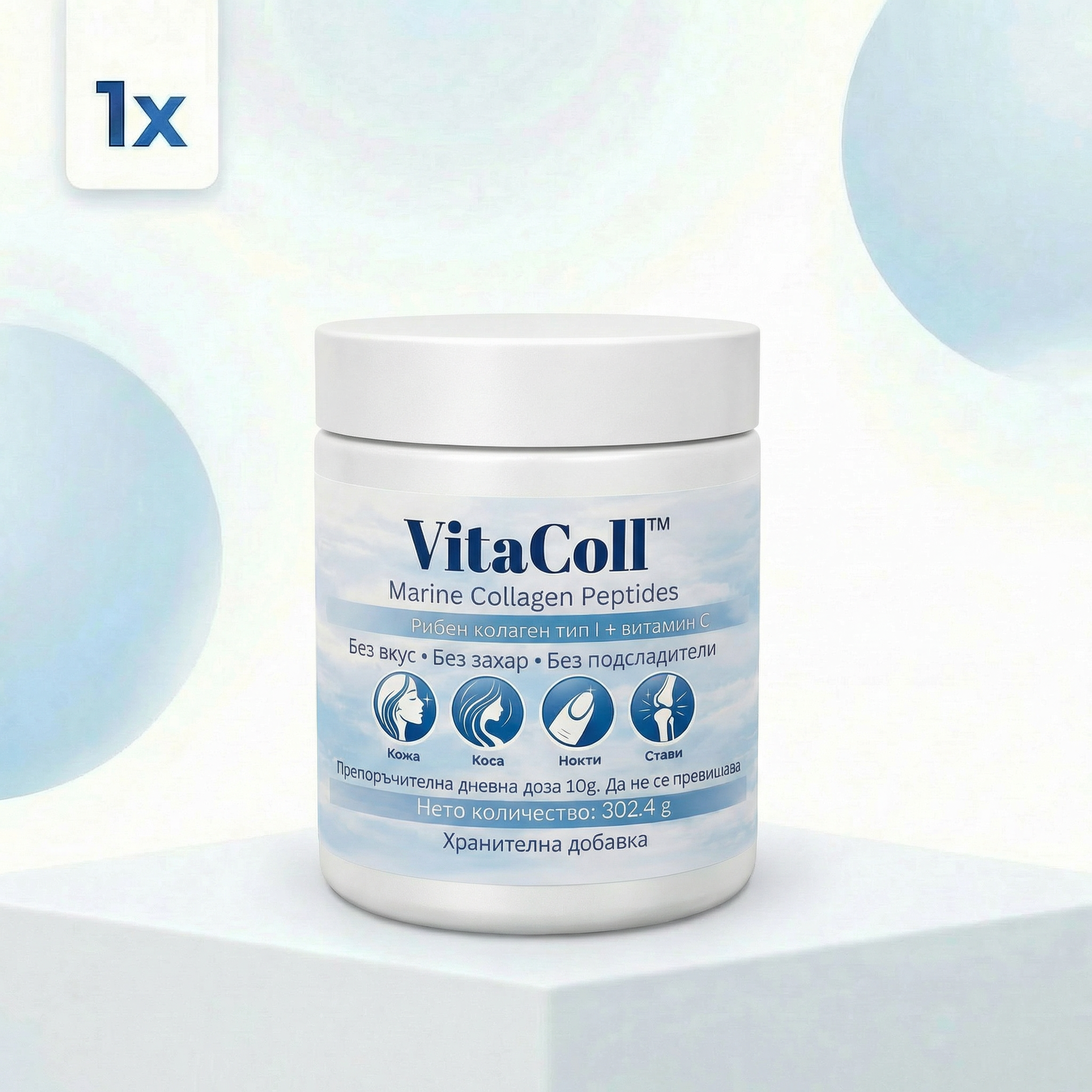 VitaColl съдържа хидролизиран морски колаген + витамин C, за по-добро усвояване и реален ефект.