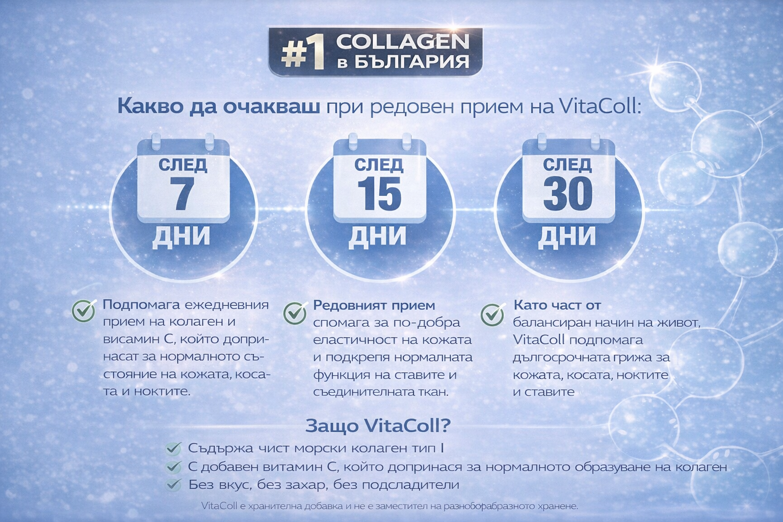 VitaColl е създаден за ежедневна грижа отвътре – подпомага кожата, косата, ноктите и ставите при редовен прием.